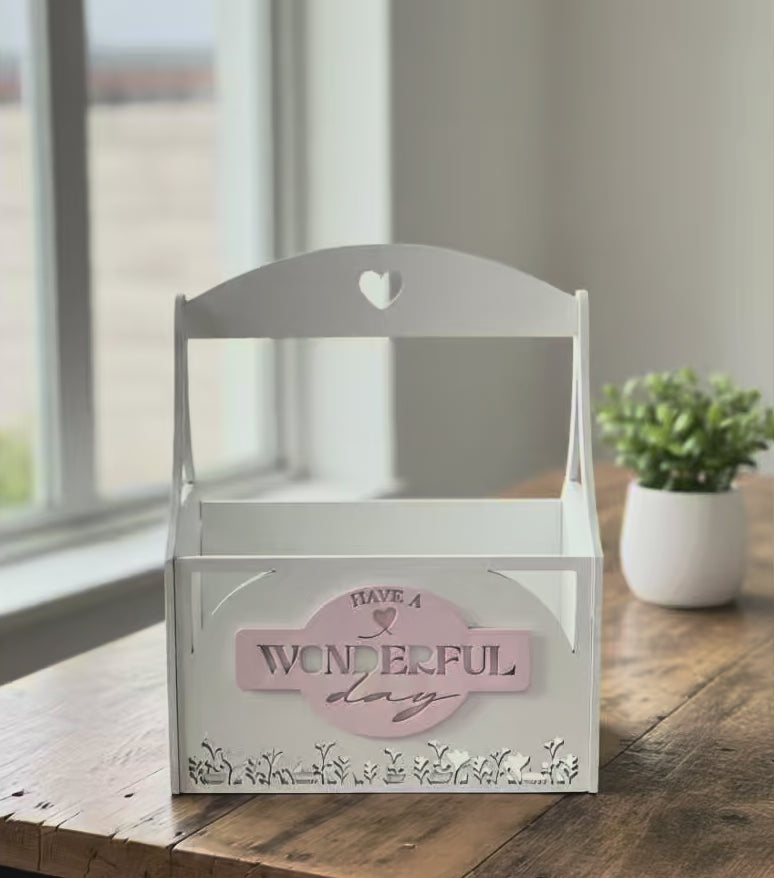 Optimisez votre espace avec élégance. Ce panier de rangement blanc avec poignée intégrée est parfait pour organiser vos accessoires de bureau.
